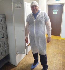 В ходе мониторинга Александром Владимировичем были проверены вопросы обеспечения работников СИЗами, проведения общественного контроля, обеспечения санитарно-бытовыми условиями, проверке состояния производственного оборудования.