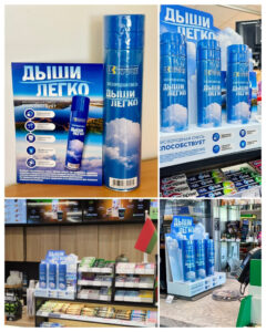 Приобрести дыхательную кислородную газовую смесь (кислород 80%– азот 20%) в индивидуальной в аэрозольной упаковке «Дыши легко» в настоящее время можно в сети автозаправочных станциях РУП «Беларуснефть» города Минска и Минской области.